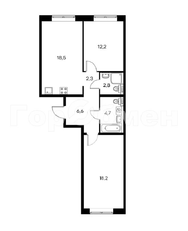Общая: 66,7 м2